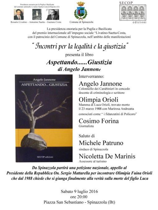 libro “Aspettando......Giustizia” di Angelo Jannone (Secop Edizioni) P