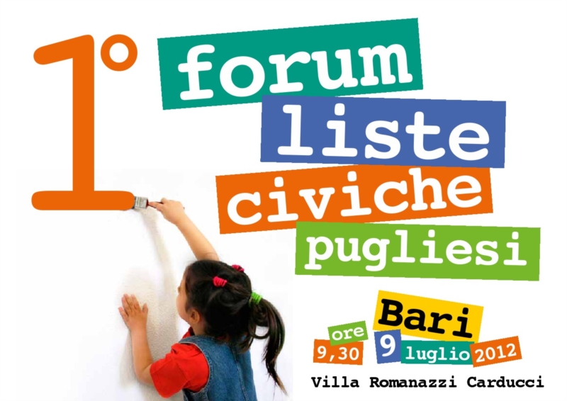 Da questi semplici ragionamenti ed auspici nasce il "Forum delle Liste Civiche della Puglia" che punta allo scambio delle esperienze, alla condivisione delle "Best Practices" amministrative fino all'individuazione di potenziali percorsi condivisi per migliorare le condizioni di vita di tutti i Pugliesi.