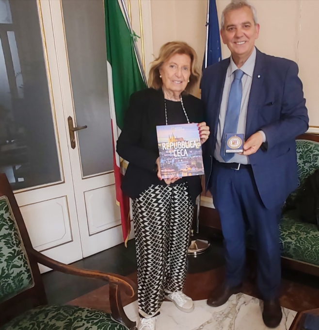 Un incontro carico di significato istituzionale, ma anche umano e civile, quello tenutosi lo scorso 20 maggio, presso Palazzo Carafa, tra il Console Onorario della Repubblica Ceca per la Puglia, Cav. Uff. Riccardo Di Matteo, e la senatrice Adriana Poli Bortone, sindaco della città di Lecce.Nel corso della visita, Di Matteo – Delegato del Corpo Consolare per le province di Foggia e BAT e Presidente dell’associazione APAMRI e Sinergitaly – ha donato alla prima cittadina una medaglia di rappresentanza istituzionale del Consolato Onorario e una pubblicazione sulla storia, l’identità e le prospettive economiche della Repubblica Ceca, sottolineando il valore delle relazioni internazionali per lo sviluppo del territorio.