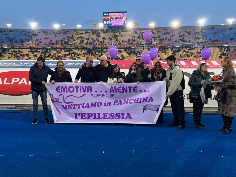 Molti monumenti in Italia si illumineranno di viola, si celebra questa giornata per sottolineare che il futuro di questa importante patologia neurologica deve essere costruito giorno dopo giorno, passo dopo passo, con il supporto di tutti noi. L’obiettivo è quello di accendere una luce speciale contro le false credenze e lo stigma e sensibilizzare verso una patologia molto diffusa. Il viola è il colore dello stigma ed è il simbolo di una duplice battaglia, contro la malattia e contro gli effetti collaterali di natura sociale, oltre che essere un modo per manifestare solidarietà alle persone con questa condizione medica e ai loro familiari. L’associazione “Emotiva…Mente” Mesagne ha organizzato con l’aiuto dell’Amministrazione Comunale di Mesagne e, del Consorzio ATS BR/4 con cui ha stipulato un protocollo d’intesa, una serie di iniziative per celebrare questa giornata. Una di queste è la manifestazione avvenuta ieri prima dell’incontro di calcio di serie A tra Lecce e Bologna, su invito del Presidente del Lecce Saverio Sticchi Damiani e della moglie Marina, dove una rappresentanza dell’Associazione insieme al Presidente del Concorzio ATS BR/4 Antonio Calabrese, ha sfilato con il proprio striscione e palloncini viola, che poi hanno fatto volare, attorno all’intero terreno di gioco, tra gli applausi del folto pubblico. Tra le altre attività già programmate c’è anche quella di pitturare di viola una panchina all’interno della Villa Comunale di Mesagne e questo per abbattere le barriere dell’isolamento e promuovere la consapevolezza verso questa patologia, uno spazio dove sentirsi liberi di condividere le proprie sfide senza timori lontano dallo stigma e dalla vergogna e in più si illuminerà di viola il Castello di Mesagne.