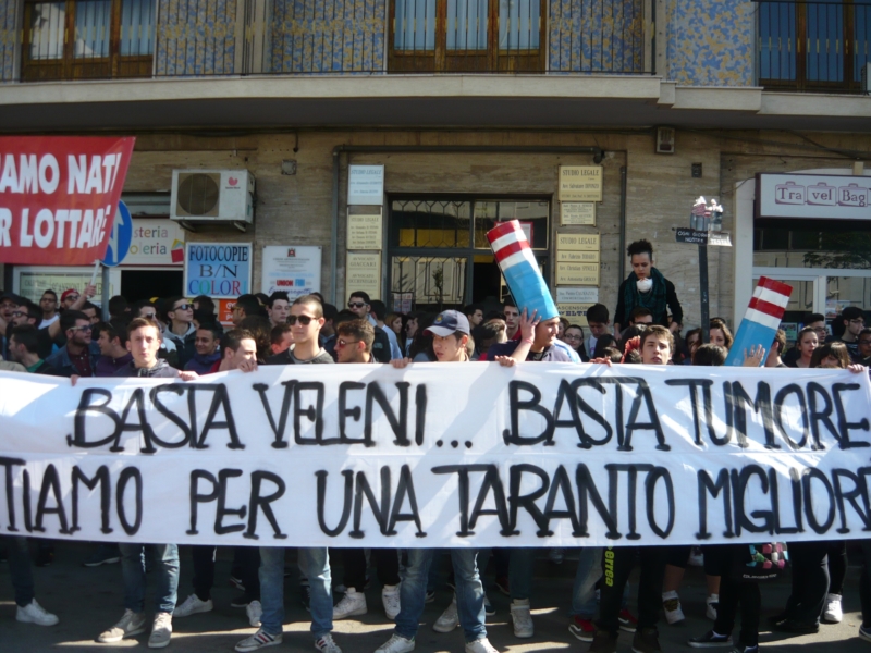 Il 30 marzo del 2012 durante un raduno a Taranto alcuni cittadini manifestano contro linquinamento procurato dall' Ilva. La maggioranza di loro ha un'età giovane, sono studenti. In quella stessa giornata migliaia di lavoratori dell' acciaieria manifestano per difendere il proprio posto di lavoro. Mentre nel palazzo di giustizia si discute dei danni causati ai lavoratori e ai cittadini, dalle emissioni nocive dellIlva. Marzo 2015 - 32 manifestanti presenti al raduno del 2012 ricevono una sanzione perché avevano disobbedito. E una punizione per chi non ha rispettato un ordine impartito per quella giornata dalla questura di Taranto: i sit-in per i cittadini comuni sono vietati.
