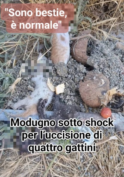 LNDC Animal Protection condanna con la massima fermezza il gravissimo episodio denunciato dalla testata "Quinto Potere": una donna di Modugno (BA) avrebbe ucciso quattro gattini, gettandoli via come immondizia, e minacciato di morte un giornalista. L'associazione chiede alle autorità di intervenire subito, con indagini approfondite e provvedimenti cautelativiBari, 14 agosto 2025 - Una vicenda che lascia attoniti e che non può trovare alcuna giustificazione. Secondo quanto riportato dal quotidiano online "Quinto Potere", una donna residente a Modugno, identificata come "Anna", avrebbe brutalmente ucciso quattro gattini, definendoli "bestie" e dichiarando che il gesto fosse "normale". Non solo: alla presenza di un giornalista intervenuto per documentare la situazione, avrebbe rivolto pesanti minacce di morte, tra cui la frase "Ti spariamo in testa".