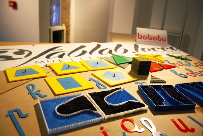 Il progetto "Montessori 3D" nasce nell'ambito di BOBOTO, un incubatore di idee orientate al mondo dell'educazione, dell'uguaglianza e dell'innovazione sociale, di cui è responsabile Iliana Morelli, con la collaborazione di Luca Ciccarese e Cristiano Maci del Fablab Lecce. L'idea ha l'obiettivo di rendere il metodo Montessori accessibile e inclusivo e, tramite le tecnologie innovative, di eliminare costi inaccessibili.