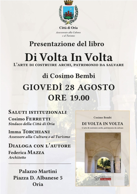 Dopo aver edificato centinaia di suggestive volte, Cosimo Bembi si cimenta con un genere di costruzione per lui del tutto nuovo, la scrittura, e ci regala pagine tanto semplici quanto traboccanti di entusiasmo per un mestiere o, meglio, un'arte che, insieme con l'amore per la famiglia, ha dato senso pieno alla sua esistenza. Senza particolari velleità di tipo narrativo o manualistico (ma non mancano preziose indicazioni di tecnica costruttiva) e senza mai indulgere all'autoglorificazione, l'amabile "mastro muratore" di Oria propone un'accattivante testimonianza della nascita e della concretizzazione della sua vocazione. Con un nobile ed esplicito intento, come dichiara nella premessa: "incoraggiare qualche giovane collega a dedicarsi a questa che è una vera arte, un patrimonio che, come auspica il sottotitolo del libro, credo e spero non vada disperso". Ma forse Cosimo Bembi vuole anche dire a tutti noi che se si vuol provare a essere felici niente vale come seguire le proprie inclinazioni, le proprie passioni, i propri sogni.