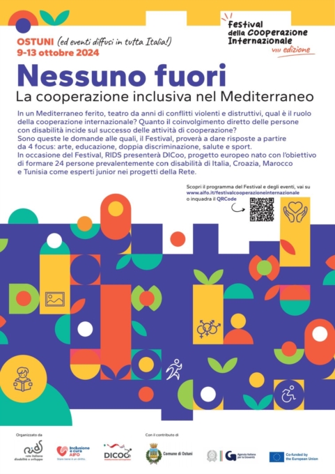 Ad Ostuni, dal 9 al 13 ottobre 2024, la VIII edizione del Festival della Cooperazione Internazionale con tema “Nessuno Fuori: La cooperazione inclusiva nel Mediterraneo”.Tra gli appuntamenti centrali del festival, la RIDS presenterà DICoo, un progetto europeo di grande rilevanza, che prevede la formazione di 24 persone, in gran parte con disabilità, provenienti da Italia, Croazia, Marocco e Tunisia.