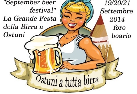 L'associazione “insieme si puo’”,organizza ad Ostuni, il 19 – 20 e 21 settembre il “september beer festival”. Evento dedicato alla birra e ai sapori locali, per raccontare il territorio attraverso le sue tradizioni. Le serate saranno animate da un nutrito programma di eventi e concerti con musica jazz dal vivo, musica rock, popolare e tanto divertimento per tutti. September beer festival, nello splendido scenario del foro boario, con degustazione di piatti tipici e di una vasta scelta di birre.Il Programma: