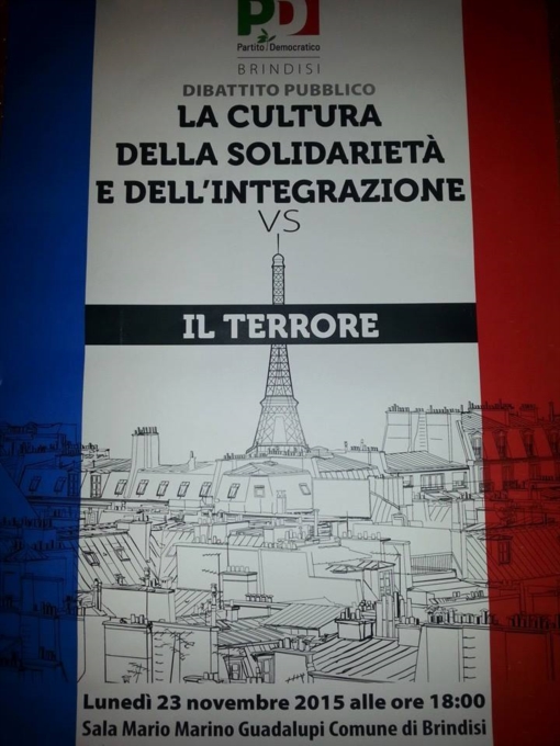 Lunedì 23 Novembre alle ore 18:00, presso la Sala Mario Marino Guadalupi - Comune di BrindisiDIBATTITO PUBBLICO: La Cultura della Solidarietà e dell'integrazione VS Il Terrore