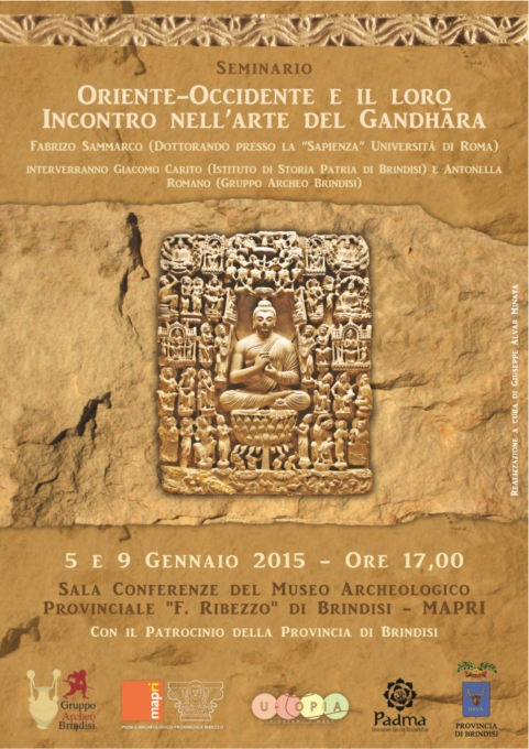 Seminario "Oriente-Occidente e il loro Incontro nell'arte del Gandhāra" Il 5 e il 9 Gennaio ore 17.00 si terrà presso la sala conferenze del Museo Archeologico Provinciale di Brindisi M.A.P.R.I. un seminario patrocinato dalla Provincia di Brindisi.