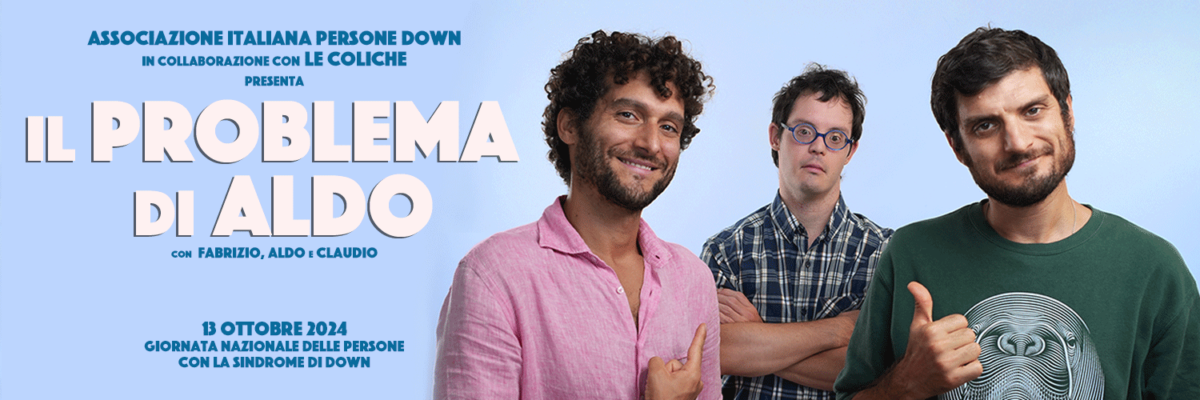 AIPD invita a una rappresentazione meno stereotipata: lo fa insieme al duo comico “Le Coliche” e con il video “Il problema di Aldo”, visionabile sui canali social di Aipd Brindisi.Sempre sorridenti, di buon carattere e disponibili: insomma buoni ad ogni costo. Così spesso vengono rappresentate le persone con sindrome di Down. AIPD, insieme ad Aldo (Andrea Moriconi) e al duo comico “Le Coliche”, sceglie la Giornata nazionale delle persone con sindrome di Down (13 ottobre) per sfidare il luogo comune e proporre un'immagine e un linguaggio non stereotipato. Lo fa attraverso la campagna “Il problema di Aldo”, che lancia con un video in cui invita tutti in piazza, per conoscere e sostenere l'impegno di AIPD per l'inclusione delle persone con sindrome di Down.