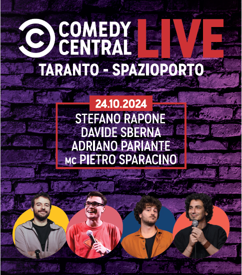 Dopo il grande successo della prima edizione, che ha visto registrare il tutto esaurito per tutte le date, torna a Taranto Comedy Central LIVE con una nuova stagione di spettacoli di stand-up comedy. Realizzato in collaborazione con The Comedy Club, l'agenzia italiana leader nel settore, questo ciclo di eventi sarà ospitato presso lo Spazioporto, l'hub culturale situato nel quartiere Porta Napoli a Taranto.