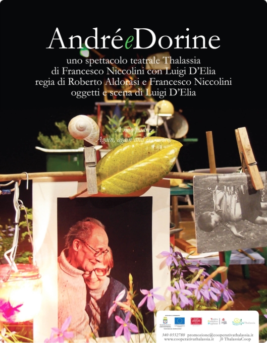 Con André e Dorine, la più recente produzione della Residenza teatrale Thalassia, martedì 18 agosto alle ore 21, prende il via l'edizione 2015 della rassegna estiva "Racconti nelle case del Parco", nell'oasi di Torre Guaceto (nelle campagne di Serranova – Brindisi). Il primo dei tre appuntamenti è ambientato in una delle abitazioni dei contadini di Serranova (Br), nell'uliveto incantato di 'Ntonuccio lu calabrese. La rassegna 2015, a cura di Thalassia, è un viaggio indietro nel tempo, un percorso lungo cinque anni, che parte dall'ultimo racconto portato in scena da Thalassia per arrivare al primo spettacolo prodotto. Un intenso viaggio sentimentale, un progetto Teatri Abitati - Residenza Teatrale Thalassia, di Teatro Pubblico Pugliese e Regione Puglia, per scoprire come è cominciata una delle rassegne estive più amate dal pubblico, come è cambiata l'oasi di Torre Guaceto negli ultimi anni e come stia crescendo il lavoro della Residenza teatrale. (Su prenotazione: 331.3477311)La tenera e straordinaria storia d'amore di André e Dorine (di Francesco Niccolini con Luigi D'Elia, regia Roberto Aldorasi e Francesco Niccolini) apre la rassegna "Racconti nelle case del Parco", martedì 18 agosto alle ore 21, nell'uliveto incantato di 'Ntonuccio lu calabrese. L'appuntamento è anche una replica speciale per festeggiare il 95esimo compleanno di Antonio ('Ntonuccio). Così, l'uliveto immerso nelle campagne di Serranova diventa il grande giardino pieno di alberi e fiori nel quale un vecchio sta infornando il pane. Si chiama André, è sporco di farina e sorride. Un bambino lo guarda. Il suo nome è Nicolas. Sono vicini di casa, André e Nicolas, una vecchia casa di pietra con il tetto spiovente per la neve. André è il migliore amico di Nicolas. Da grande vorrebbe essere esattamente come lui, vecchio e sorridente. André vive con Dorine. Si amano e condividono il tempo e lo spazio da una vita.