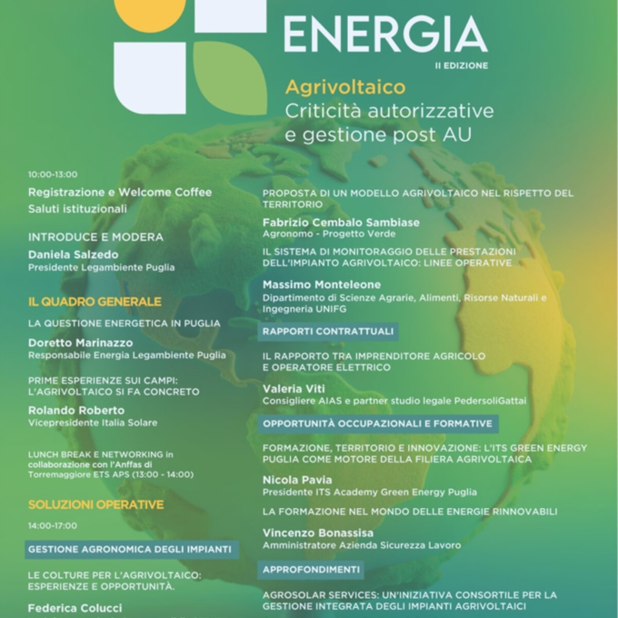 La mattinata si aprirà con i saluti istituzionali, seguiti da un primo momento di approfondimento dedicato alla "Questione energetica in Puglia", per analizzare il contesto attuale e le sfide legate alla transizione energetica nella regione.